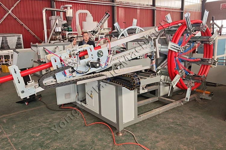 ໃນປີ 2025, ພວກເຮົາສຳເລັດການຈັດສົ່ງເຄື່ອງອັດທໍ່ທໍ່ PE ອັດຕະໂນມັດສອງຊຸດທີ່ກຳນົດເອງໃຫ້ກັບວິສາຫະກິດປຸງແຕ່ງພລາສຕິກຊັ້ນນໍາຂອງອາເຈນຕິນາ. ລູກຄ້າຕ້ອງການການແກ້ໄຂ winding ທີ່ມີປະສິດທິພາບສູງເພື່ອໃຫ້ກົງກັບສາຍທໍ່ PE ຄວາມໄວສູງທີ່ຂະຫຍາຍໃຫມ່ຂອງພວກເຂົາ. ຄໍາສັ່ງປະກອບມີສອງຫນ່ວຍງານພິເສດ: ເຄື່ອງ winding ອັດຕະໂນມັດສອງສະຖານີຫນຶ່ງທີ່ດີທີ່ສຸດສໍາລັບທໍ່ເສັ້ນຜ່າກາງ 15-32mm, ແລະຮູບແບບຄວາມອາດສາມາດສູງອີກອັນຫນຶ່ງທີ່ອອກແບບສໍາລັບເສັ້ນຜ່າກາງ 20-63mm. ເຄື່ອງເຫຼົ່ານີ້ປະສົມປະສານ seamlessly ກັບສາຍ extrusion ທໍ່ PE ຄວາມໄວສູງເພື່ອອັດຕະໂນມັດທໍ່ລົມເຂົ້າໄປໃນມ້ວນເປັນເອກະພາບ. ພ້ອມກັບລະບົບການນັບຄວາມຍາວອັດຕະໂນມັດ, ເຄື່ອງຈະກະຕຸ້ນການຕັດອັດຕະໂນມັດ ແລະການໂອນສະຖານີເມື່ອໄດ້ເຖິງຄວາມຍາວເປົ້າໝາຍ. ມັນພ້ອມໆກັນຮັບປະກັນມ້ວນສໍາເລັດຮູບແລະກະຕຸ້ນເຕືອນສໍາລັບການຫຸ້ມຫໍ່, ສະຫນອງການແກ້ໄຂ winding ອັດຕະໂນມັດຢ່າງເຕັມສ່ວນ. ການທົດສອບໂຮງງານຢ່າງເຂັ້ມງວດກ່ອນການຂົນສົ່ງໄດ້ຮັບປະກັນການດໍາເນີນການທີ່ຫມັ້ນຄົງຢູ່ສະຖານທີ່ຫຼັງຈາກການຈັດສົ່ງ.